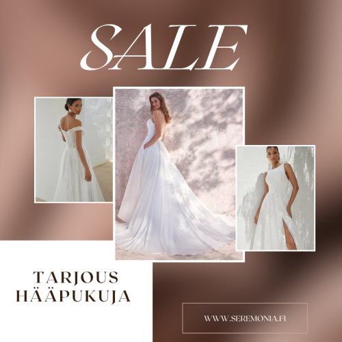 Huikea kattaus morsiuspukujen mallikappaleita Seremonian upeilta kansainvälisiltä merkeiltä : Maggie Sottero, Sweetheart by Justin Alexander, Victoria & Vincent, Bianco Evento, Rebecca Ingram, Daniela di Marino ja Angela Bianca nyt superedullisesti ulottuvillasi. Tarjoushääpuvut ovat sovituskappaleita ja ne myydään siinä kunnossa mitä ne ovat myyntihetkellä.